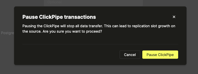 Есть ситуации, когда полезно приостановить MySQL ClickPipe. Например, вы можете захотеть выполнить аналитику по существующим данным в неизменном состоянии. Или вы можете в этот момент обновлять MySQL. Ниже описано, как приостанавливать и возобновлять MySQL ClickPipe.